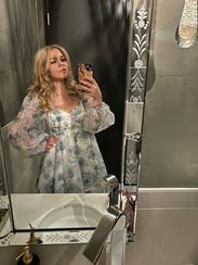 Love this dress and that it sits more at the natural waist, unlike many of Selkie's dresses that are much higher. You can also wear it with a belt (I had to because I normally wear XL, but it was too small in the rib cage, so I had to size up and the XXL was just slightly loose). The sheer puffy sleeves stay puffed and don't lose their shape either.