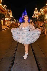 This dress means everything to me. I was inspired by a lovely RTR reviewer who wore this dress to The Magic Kingdom. My visit was “Cinderella and her Blue” inspired. This dress is simply magical. However, It was very challenging “getting dressed for the Ball” but I didn’t give up, and you shouldn’t either. First, I thought the dress too small because I could not zip it up. But together with a “Fairy Godmother” (aka the hubby), we were able to jiggle and ease the zipper over the troublesome spot that transitions to the rib cage. One person bunches the material together, while the other patiently eases it up. It worked! We practiced several times the day before the event. The XS is not too small for my frame, after all! Once zipped, the dress fit snug but comfortable. However, there is NO WAY I could have worn the XXS, and so I am glad RTR was out. I have an average rib cage, I am a 32D, and my waist is 25. Had I gone larger, the corset might not have provided enough structure for going braless, which was necessary. The corset section is not the most comfortable as the material did itch a bit. I had to adjust it a few times. It did not matter a single bit because this dress garnered so many compliments and the details are so stunning that Cinderella herself commented on its beauty. My “Fairy Godmother” carried my “glass slippers” in a backpack and I changed prior to photos and dinner with the Princesses. At the end of the evening, I was able to ride Cinderella’s Horse on the Carousel (in this dress) resulting in a most magical evening. The cast member operating the attraction loved this dress! I hope these details help those who are trying to decide if this look will work. Don’t give up! Thank you for the inspiration, RTR, and for helping me to fulfill a childhood dream with such sophistication.