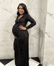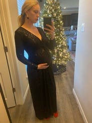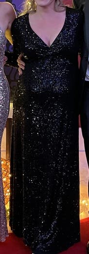 I seriously didn’t think I would find anything comfortable and flattering at 34 weeks pregnant, but this was exactly what I needed. I’m so happy with this dress. Would recommend to anyone wanting to sparkle!!