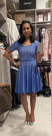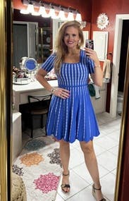 Like almost all Shoshana dresses, this dress is top quality, figure flattering, beautiful, high quality knit that hangs perfectly! I got SOOO many compliments on this dress! I wish it was marked down a little more so I could buy it! Love it!