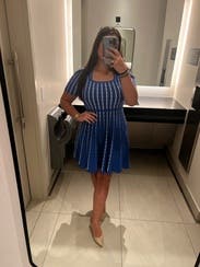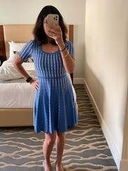 The dress is very flattering, adorable, and I received so many compliments. I wasn't sure whether the S or the XS would fit better. I opted to borrow both dresses. I wore the xs bcause I prefer dresses that aren't loose and show my curves.