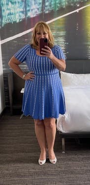 This dress was cute & fun. Can be dressed up or down. Comfy & true to size.