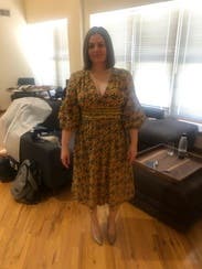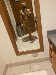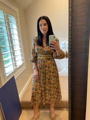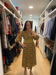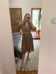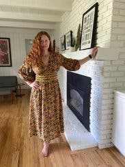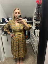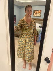 This is the second time I've rented this dress and I love it just as much as I did the first time. It's lightweight, comfortable, stylish and perfect for work or just anytime. I paired with UGG sandals and a mala bead necklace. I would love to buy it but trying to save money so I'll probably just rent it again (and again). Seems to fit true to size- not snug or tugging anywhere.