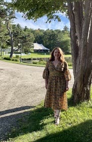 I rented this for my birthday wine tasting event. Is so comfortable, not to hot and the colors would work in both spring or fall. I also appreciated that while it had a deeper v-neck, I could still wear a normal bra.