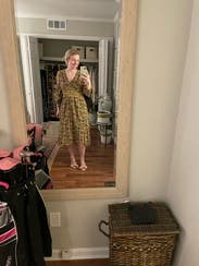 Sized down to 6 from 8 and the fit was good. Fabric was really breathable and print was nice enough, but it had a matronly vibe for me. Didn’t love.