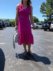 I loved the color of this dress, and liked that it button downed low so it didn't blow up and flash anyone when walking. The back wasn't flattering though, the seam lines created this weird bunching on my butt that wasn't cute. Also a little tight across the bust, had to pin it