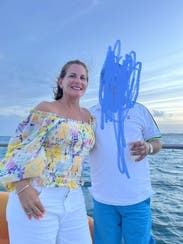 Such a fun shirt. Blues, pinks and yellows all are good matches! Definitely rent!