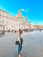 Rented this off the shoulder top for vacation. Next time I will Rent a medium (I am a size 8). Not sure why I chose a Large. Colorful and comfy Went great with white pants but could easily pair with many other colors