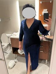 You can see from the other reviews how popular this dress is and understand why. It’s a beautiful deep blue color, stretchy and very comfy. I loved it as did everyone I was with.