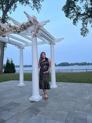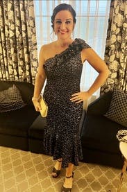 I did like this dress a lot. But I decided it wasn't right for the event. Too flashy. But it was a lovely option. I thought very forgiving even for a 8 week postpartum breastfeeding mama.
