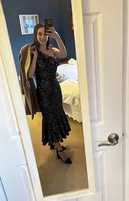 Wore this dress out for a birthday dinner at a jazz bar - perfection! The fit was great and it’s an awesome statement dress. Very fun and moves beautifully. Could have been a slightly more tailored fit but pretty close in my opinion. Comfortable and classy!