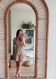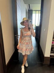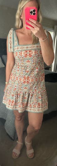 I wore this to my dad’s birthday party ajd got so many compliments! I felt cute and colorful, and the dress was flattering. Has elastic shirring on the back if you’ve got bigger girls. I’m taller with a booty and it wasn’t too short either.