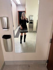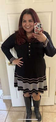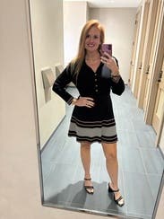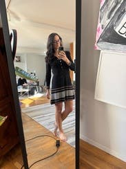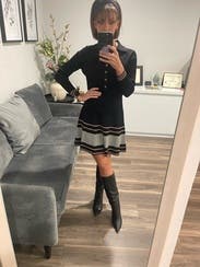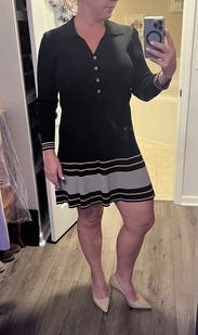 I thought the dress was cute. It fit well. The knit is a slightly heavy so good for a winter night. I wanted to get a new shipment going so I wore just once, otherwise, I would have worn again. Fabulous quality.