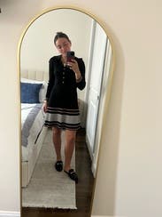 This was adorable and springy with flats, but ended up wearing with tights and boots because it was a little short for the office. A little big in the arms and chest, I maybe should have sized down.