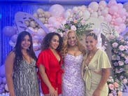 A little more pink than I anticipated, but worked well for my bridal shower. Forgot my spanx at home, but overall this dress LOOKED expensive and heavy, but was light and airy and very comfortable. Would highly recommend.