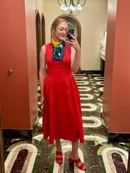 I probably could have worn a size smaller, but this size worked as well. Will rent again! Wore to a shower, work and dinner.