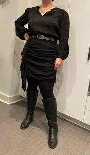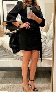 Nice, straightforward, LBD. Elastic waistband across the back makes this very forgiving and comfy. Could go with smaller size if you’re in between.
