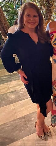 I rented this as a backup option for my work holiday party. It fit but was very conservative, frumpy and underwhelming. Ended up wearing my other option.