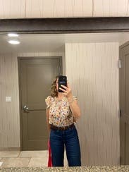 Cute top but very flowy and oversized. Should have tucked. Or if I was pregnant I’m sure it would have been great ;)