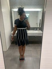Love this dress. It looked fantastic and hugged all my curves. Ladies - makes your butt look amazing!! It is stretchy material and is soooooo comfortable. There's no zipper, so you gotta get it in from the bottom up. I had to size up to a Large because the band on the Medium was just a bit tight. I wore this to a Fundraiser Dinner that my organization was hosting and it was perfect. I will rent again for sure! (If not just purchase with my monthly subscription!)