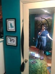 I wore this to work and almost forgot to snap a pic. So sorry it's in my messy closet with fingerprints on the mirror. You can thank that little face to the right for those. On to my review, this was one of my favorite rentals. It's comfortable, classy and very flattering. I wore with tights and heels. Perfect for early fall weather and I got a ton of compliments! The girl at the UPS store was raving about it! I love the fabric too. It is thick and feels great against your skin.