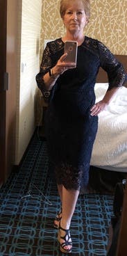I was attending a gala as an honoree for my work. I knew I would mainly be photographed behind the table where I would be signing books, and wanted to keep my top half professional without exposing too much décolletage. As a visual artist, I also wanted something beautiful and interesting without a color pattern that might clash with my book cover. I felt this dress hit all the marks. The rich lace texture was gorgeous and key to hiding some body insecurities (upper arms, anyone?!?) I added fun fuchsia accessories (heels, bag, earrings) to keep my look creative rather than conservative. The dress was also extremely comfortable and allowed me to wear a basic nude bra without anything showing. I’ve been working to lose weight (down 20+ lbs!) and was’t sure what size would work. The 10 was a surprisingly perfect fit. My backup 12 wasn’t terrible either - the thick lace really holds its shape.