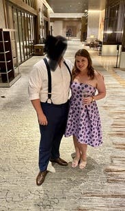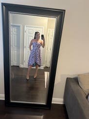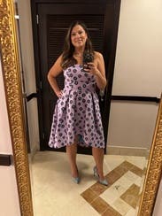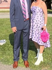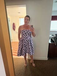 Why I love RTR!! I totally stepped out of my normal style with this one and LOVED! Felt like Carrie in Sex & the City. Wore to a friend’s dual birthday/Derby party and it was so appropriate! I would likely try a size 4 if I wore again only because I have a broader frame and the zipper did pinch my back a little bit but not enough that it bothered me while wearing! Once my husband got it zipped up it truly felt like a fairly perfect fit. It’s more that I just knew it was giving me a little back fat vs feeling it as uncomfortable. So cute!!!