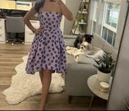 Fun dress. Feminine with flair but not too formal. Super cute on. Lots of compliments. I've worn more comfortable dresses but it was too cute to be annoyed.