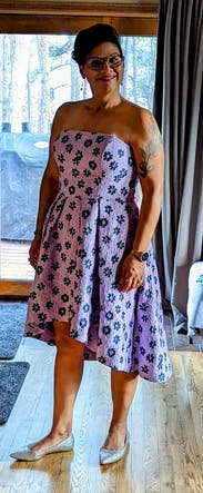 Got so many compliments on this dress. Didn't have to wear a bra or be worried it wouldn't stay up because it fit like a glove.