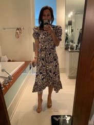 Liked the puff sleeves. The fabric is thicker almost like canvas with a cute print. Would rent again.
