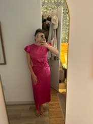 I loved how vibrant this color was - one thing to note that the fabric does get a bit wrinkly but it’s gorgeous and I got ton of compliments!
