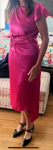 This dress is amazing. It’s beautiful. And it’s magical. Truly. SO FLATTERING. Normally silky material in a fitted silhouette freaked me out but I listened to other reviewers and I was not disappointed. If this came in a more neutral color I’d buy it and wear it over and over and over again.