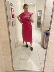 The dress is form flattering, comfortable, and the color is the perfect pink. It was a bit loose on the top, so I believe a size smaller could have been a better option. Nevertheless, an excellent piece!!!