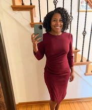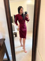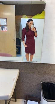 Wore this for my most recent work headshots - the color is beautiful, dress is super comfortable and great length for the office (I’m 5’7”) but may be too long for shorter ladies.