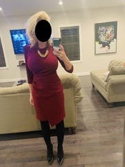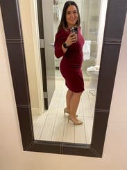 The color is amazing, I received many compliments while wearing this dress. It hugged all the right curves and was warm for “winter”. I felt great in this dress.