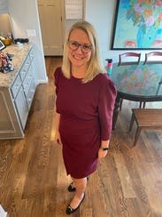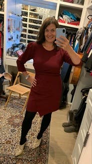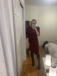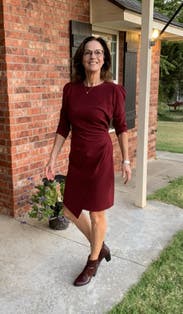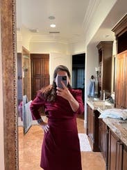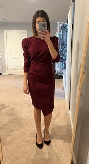 Perfect dress for work events. Wore to a conference where indie a lot of walking. Great material with slight stretch and doesn’t show wrinkles. Color is my favorite. Only thing is the slightly proofed sleeves (at shoulder) make me look bigger and as a broad shouldered 5’9” woman, I prefer less focus on my shoulders. Still received many compliments on the dress. Felt great wearing it.