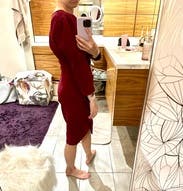 This dress was very unflattering. I probably needed a smaller size, but also the way the fabric drapes across the front did not work for my body.