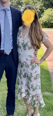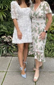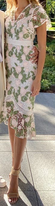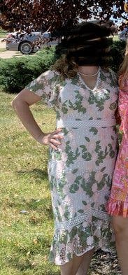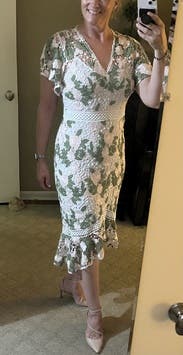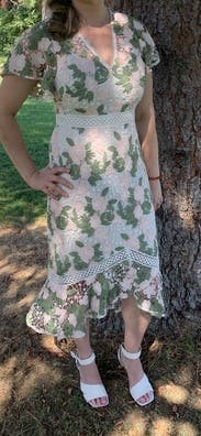 Lovely dress for wedding guest, bridal shower, baby shower or luncheon. Lace detail is gorgeous but note that it’s easy to snag. May be tight in the chest for larger chested people.