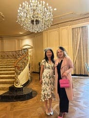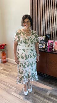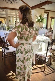 I loved this beautiful dress. The green and pink colors were so pretty and the detail was so intricate. I loved the fit and I will definitely rent this one again!