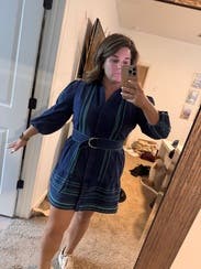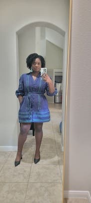 I like the length of the dress for me and that I could cinch the belt to accentuate my waist. I should have sized down though…it was a little big on me.