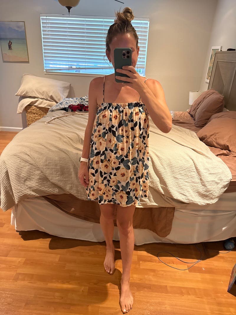 Dainty tie straps suspend the swingy silhouette of this Show Me Your Mumu mini dress complete with side pockets.