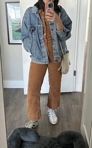 A defínete vibe. Great for everyday or work. Cropped glare cute but cut with boots. Courdoroy but never made a sound. Easy to go to the bathroom