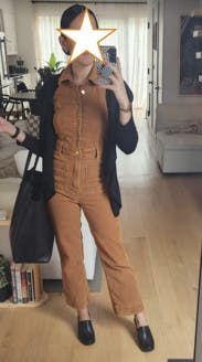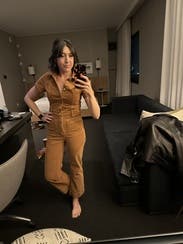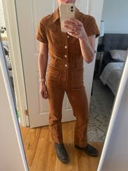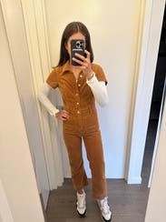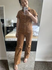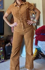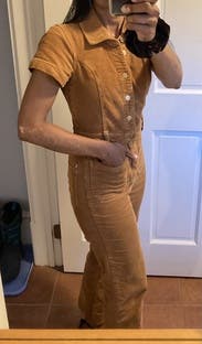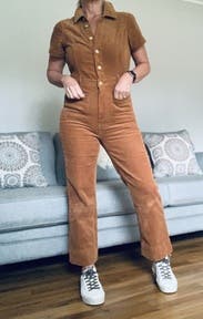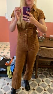 I lived this jumpsuit. The corduroy is very comfortable and it's perfect for the short girlie's like me. I like thy it had a zip and buttons. Only thing is it can be a bigt loose in the shoulders