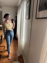 So much potential, but weird fit, especially if you’re bustier. The material plus big boobs combo had this top weirdly jutting out for me, no thank you