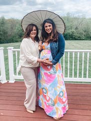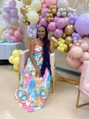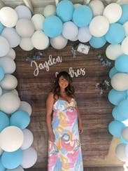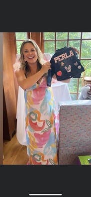 This would be a great dress for a gender reveal also. We already knew it was a boy but we were doing a beach side shower so wanted something more unique and colorful than just blue. It fit my super large belly perfectly and the colors are more beautiful in person. So many compliments.