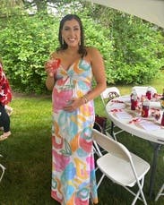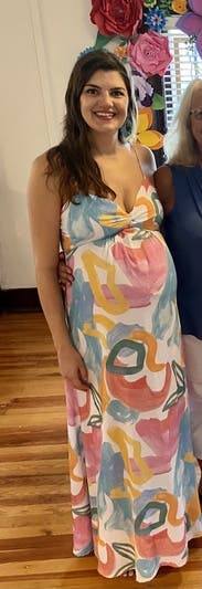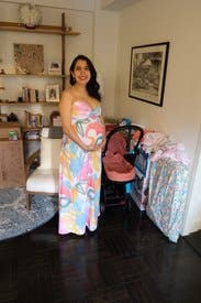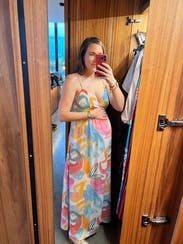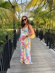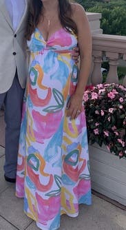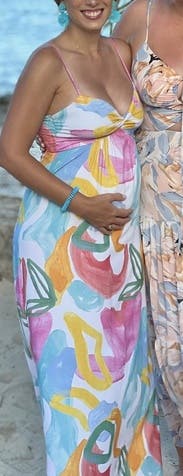 Loved this dress! So fun for a summer pregnancy. I'm 28 weeks here and loved how comfortable and flattering the dress was. Good length with sandals and adjustable straps was a bonus