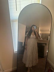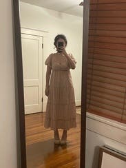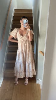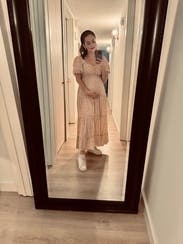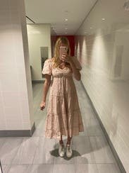 It gives August by Taylor swift vibes. I wore this for a family photo shoot on the beach in OBX and so happy I chose this piece. I really liked that it was not too long on me, despite me being 5’1. Was honestly a perfect length.