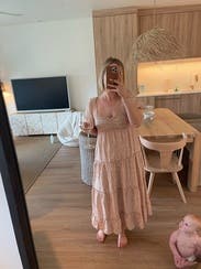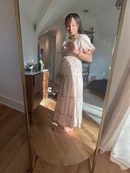 I rented this for my baby shower and though it was perfect! I got so many compliments and felt beautiful in it. Definitely would rent again!