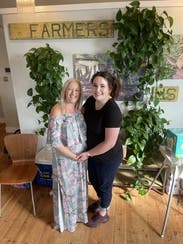 I wore 9 months pregnant with kid #4 and sized up - but was not flattering on my huge belly, especially from the sides/back. Would be great at an earlier stage of pregnancy or maybe for first time mamas where your belly is not so big. :)