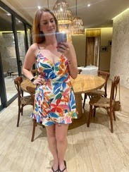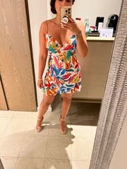 I rented this for a trip to Mexico and wanted to purchase it so badly! If I lived somewhere that I knew I’d get more wear out of it, I would definitely invest in it. It’s short but I didn’t feel like I was going to flash anyone. Could have gone down in size for the fit up top but would have been worried about the length and the wrap style helped make the top feel more secure. Would absolutely rent again!